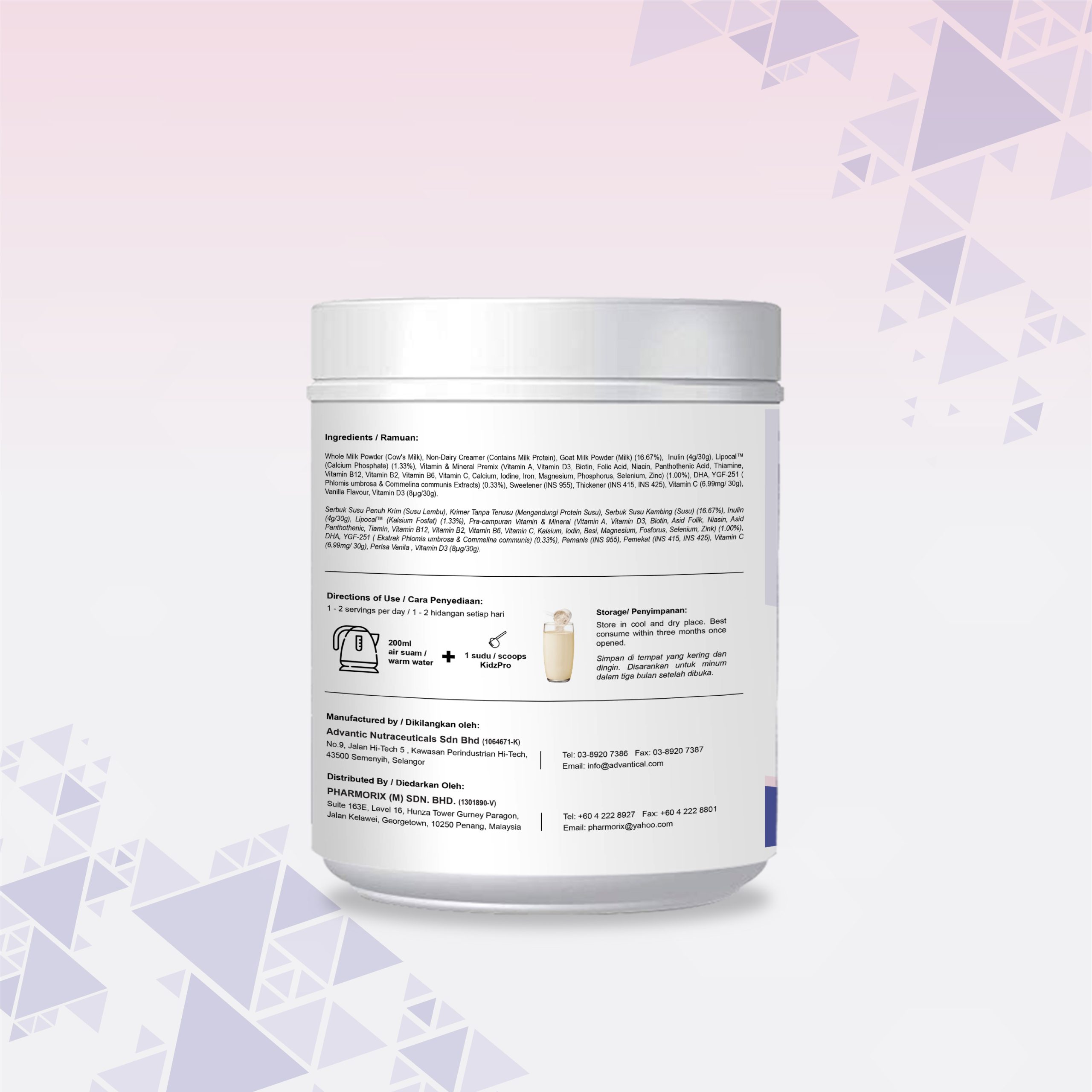 Fortified with Lipocal™ calcium, YGF-251 Botanical Complex, DHA, prebiotic fibre as well as a full spectrum of essential vitamins and minerals to support holistic growth