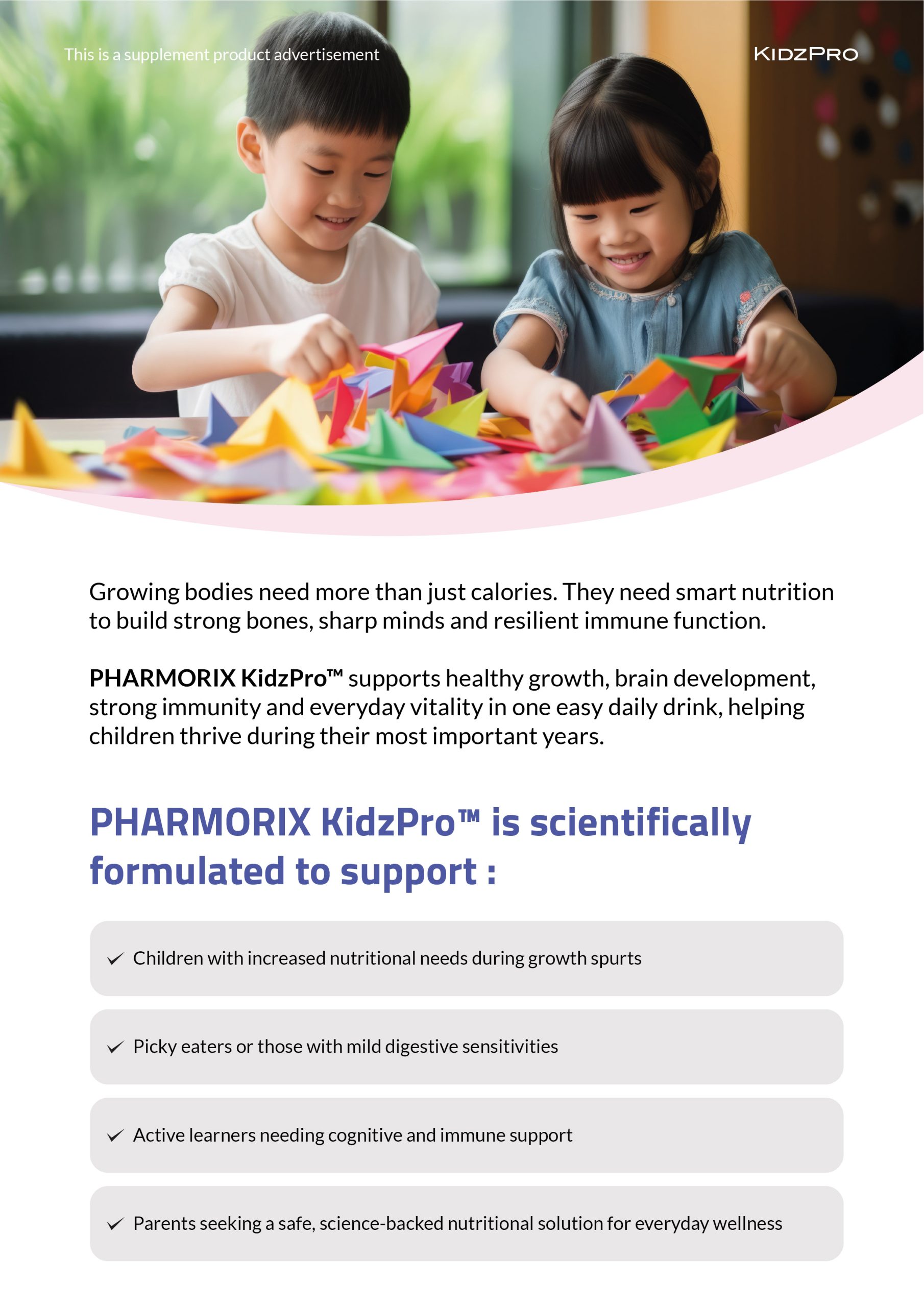 Designed for children, including picky eaters, active learners and those with sensitive digestion