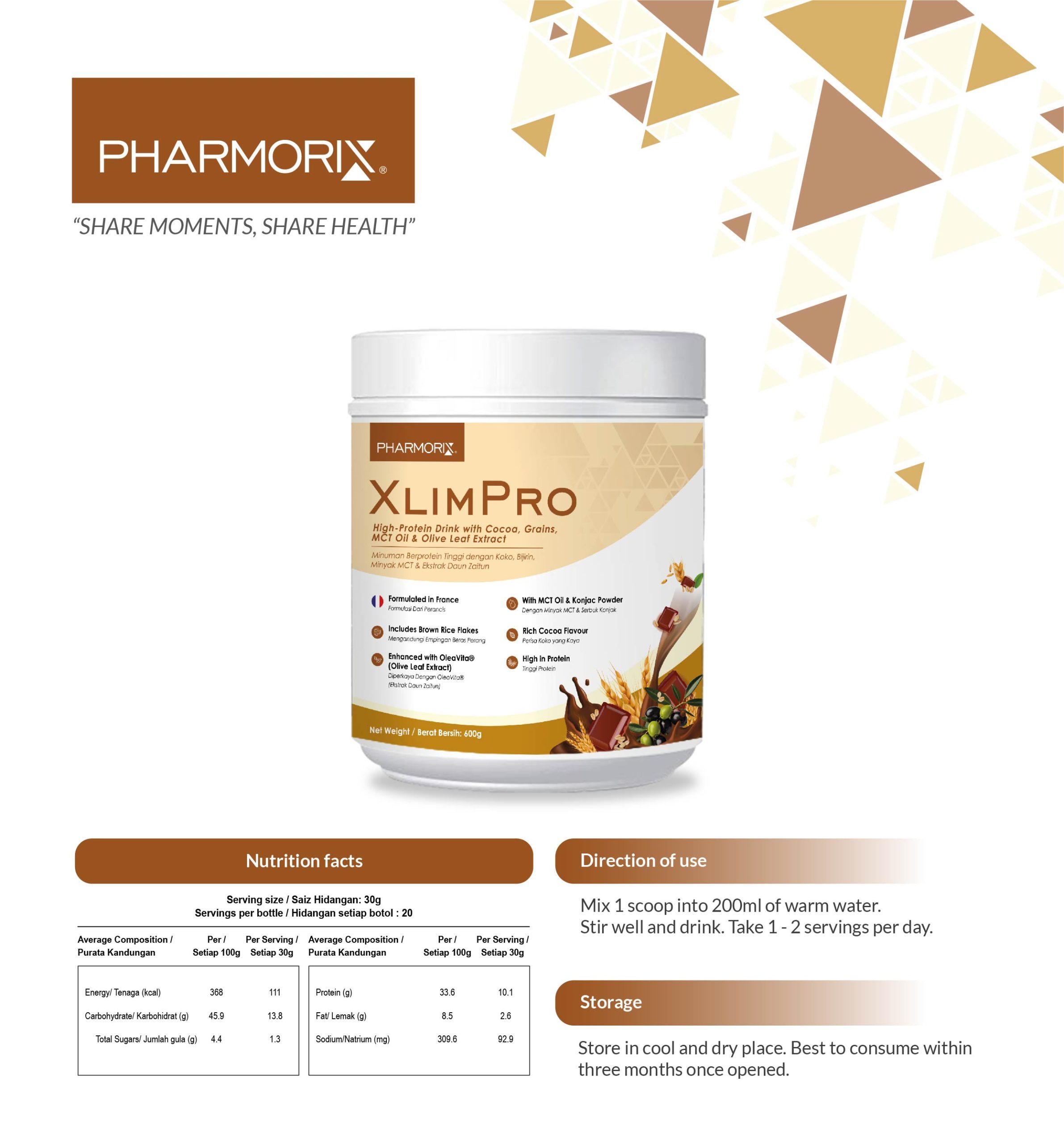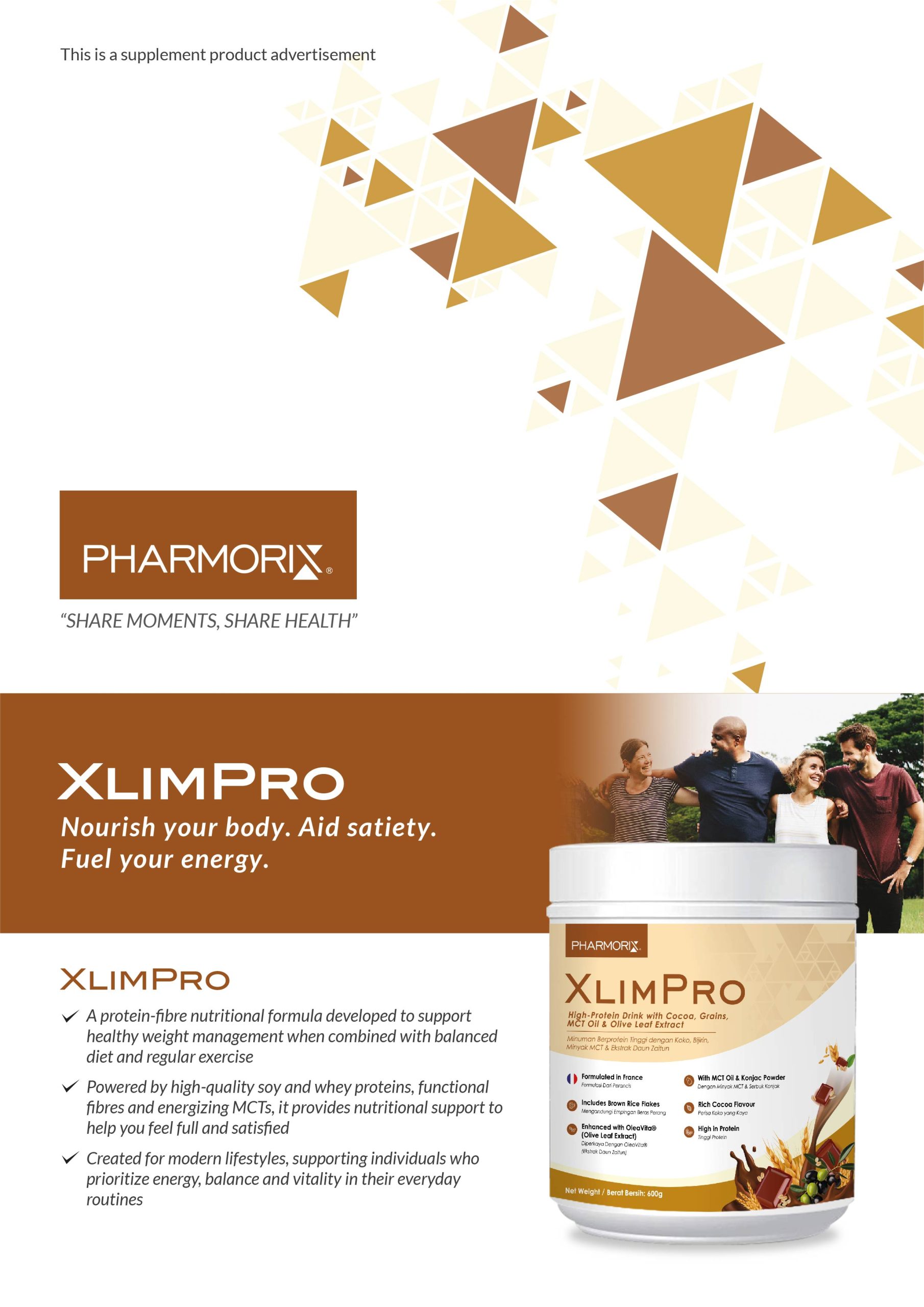• A protein-fibre nutritional formula developed to support healthy weight management when combined with balanced diet and regular exercise